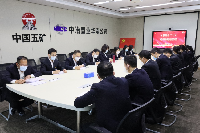 为落实中冶置业集团党委关于学习贯彻党的二十大精神的统一部署,华南公司组织开展了“学思践悟二十大 砥砺奋进新征程”系列学习宣传活动,全力推动党的二十大精神入脑入心、落地落实。
