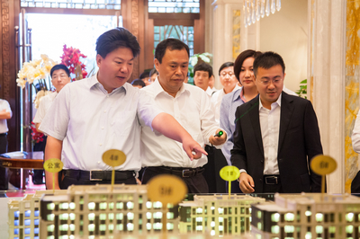 刘福明代表中冶置业全体干部职工对国董事长及中冶集团各级领导能够在百忙之中来项目现场调研指导表示热烈欢迎,对多年来中冶集团给予中冶置业及项目的发展所提供的支持和投入的巨大精力表示感谢。随后,刘福明简要介绍了“中冶•德贤公馆”项目。刘福明指出,在中冶集团领导的亲自参与和指导下,中冶置业按照“两退一招一进”的总战略获取了“中冶•德贤公馆”项目,经过两年时间,项目土地价值不断攀升,地块区域优势显著。在项目操作思路上,中冶置业始终坚持开发精品、打造品牌、提升知名度、实现效益最大化的目标。项目运作中坚持做到专业化、市场化、社会化。通过公开招标,整合优质资源,选拔具有高端豪宅打造经验的建筑设计、景观设计、销售代理、营销策划、物业服务等单位,组建了一支强有力的项目操作团队,全过程、全流程体现出高端产品先进性、规范性、超前性的开发理念。刘福明表示,今年1月份“中冶•德贤公馆”项目启动宣传,7月18日售楼处正式开放,目前,项目已经在业内赢得高度关注和广泛赞誉,在客户中获得高度认可。我们有信心通过中冶德贤公馆项目,把中冶房地产的牌子打出去、打响亮。