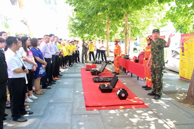 北京物业公司总经理孟祥奎对此次消防疏散演习给予了高度重视,他亲临现场进行督导,要求演练结合实际,提高全员的防范意识和处置火灾的能力,并委托北京物业金澳国际项目经理李晓波与海淀消防中队长共同指挥。北京物业公司总部职能部门、金澳国际项目全体员工和各项目安保部主管及部分业主共200余人参加了此次演习。