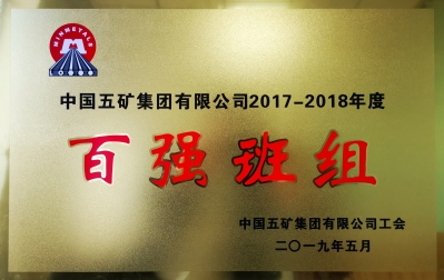 “中国五矿集团2017-2018年度百强班组”荣誉奖牌