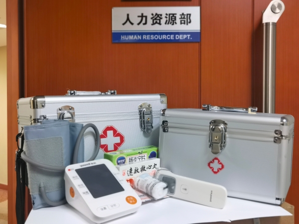 小药箱的放置地点为人力资源部。今后,在工作中员工如出现不适,小药箱可以提供及时服务,确保员工能安心、舒心地工作。