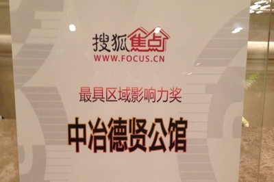 中冶置业集团投资开发的“中冶•德贤公馆”在新年伊始被搜狐焦点网评为“最具区域影响力奖”。