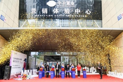 与会嘉宾为天津中冶·盛世国际广场营销体验中心剪彩揭幕